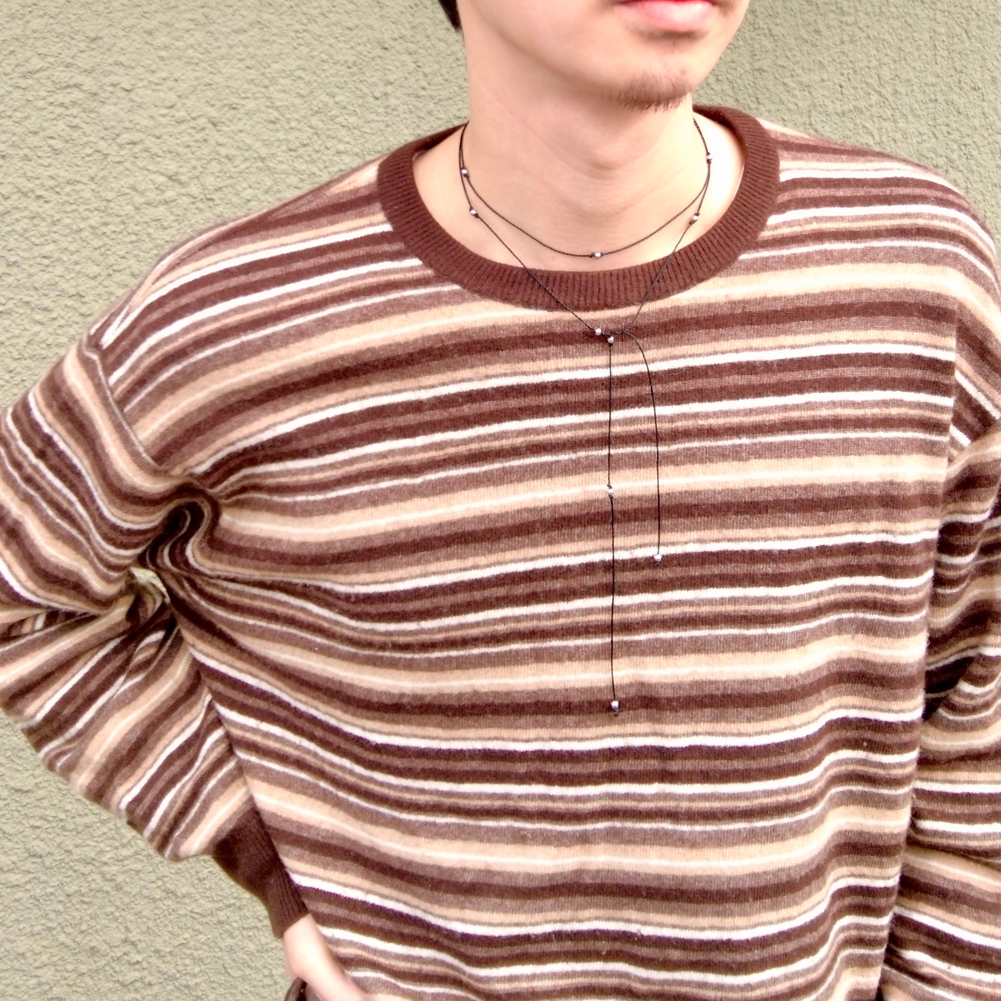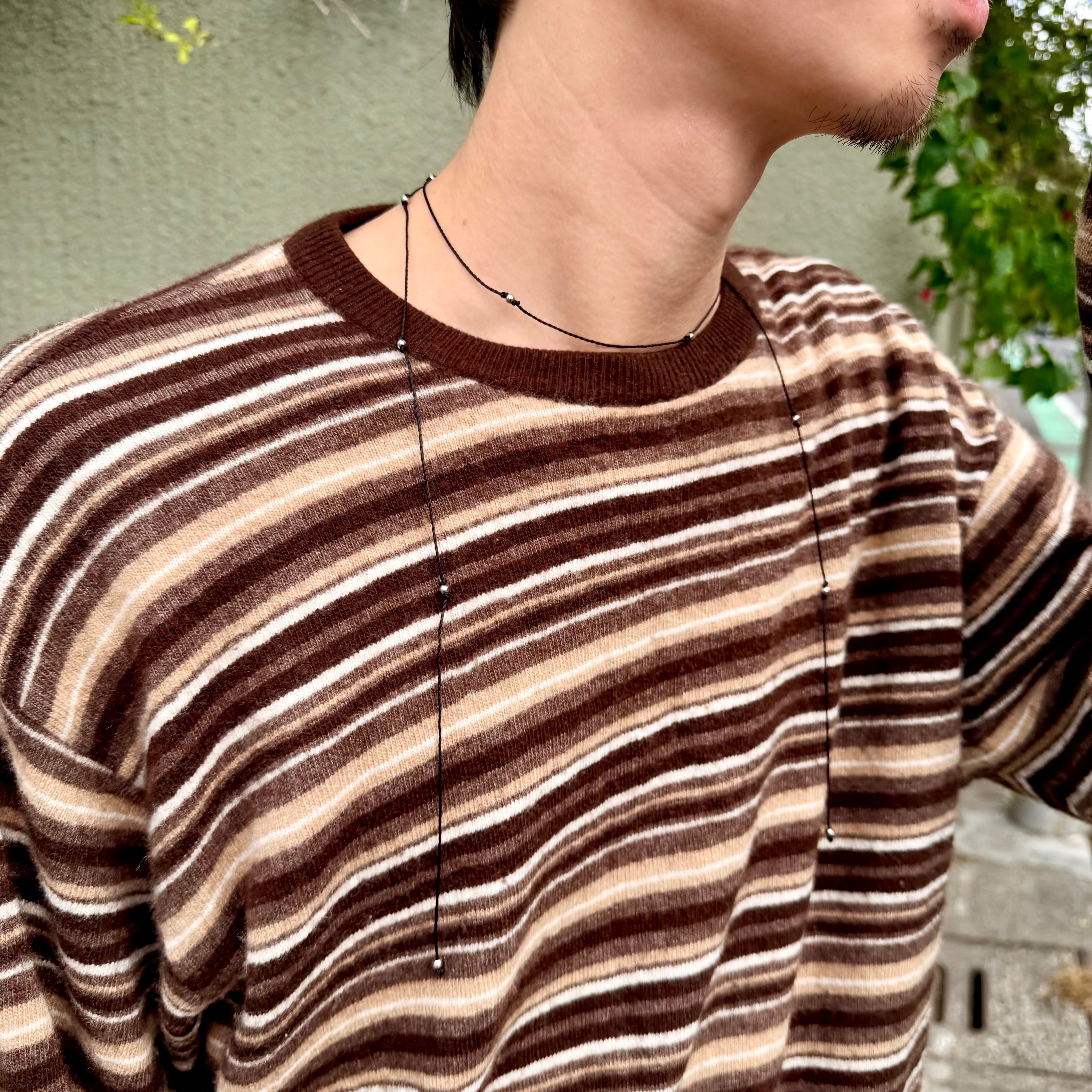 細くしなやかなブラックコードに、小さなステンレスビーズをほんのり散りばめたシンプルなロングネックレス。