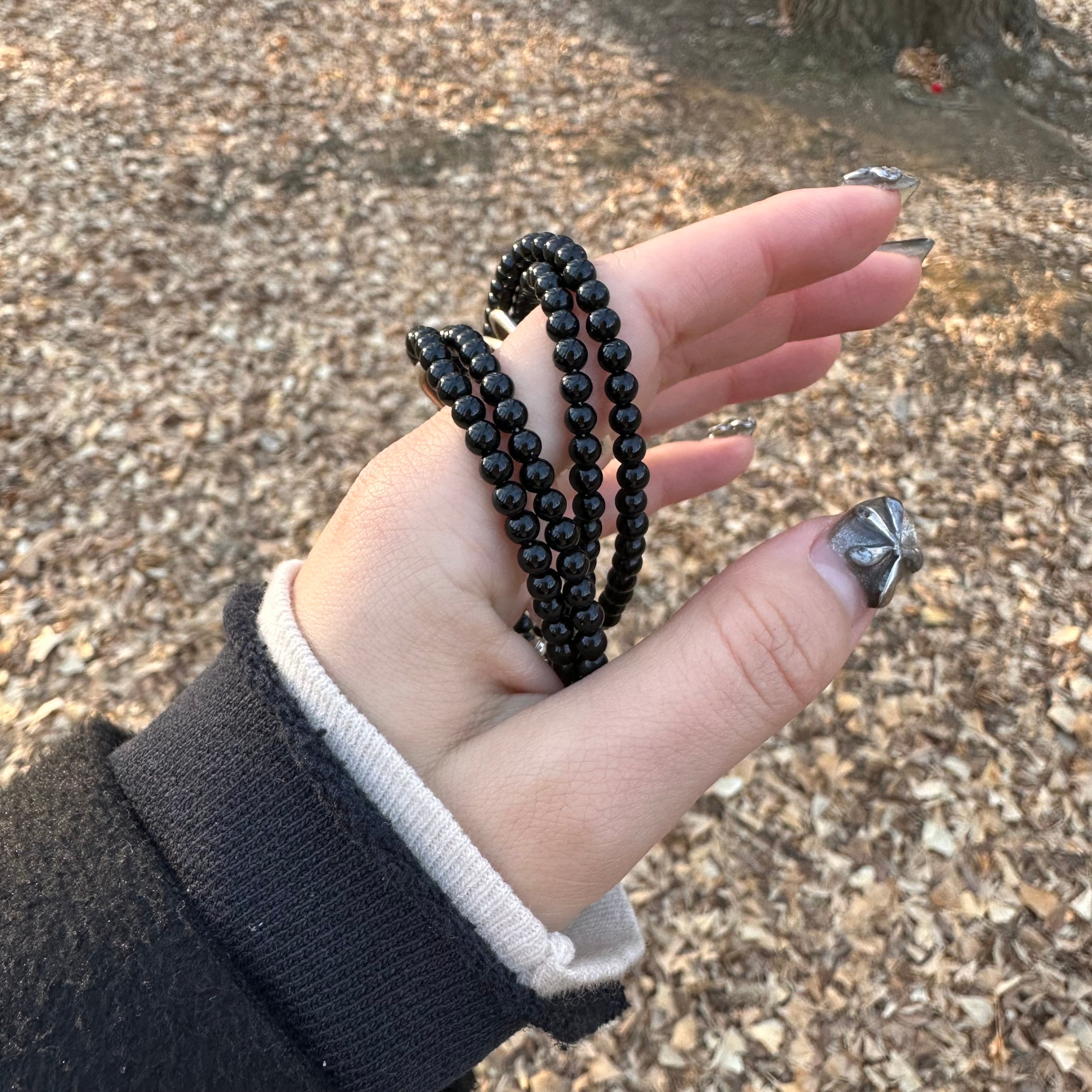 艶やかに輝くオニキスを使用した、シンプルなネックレス。