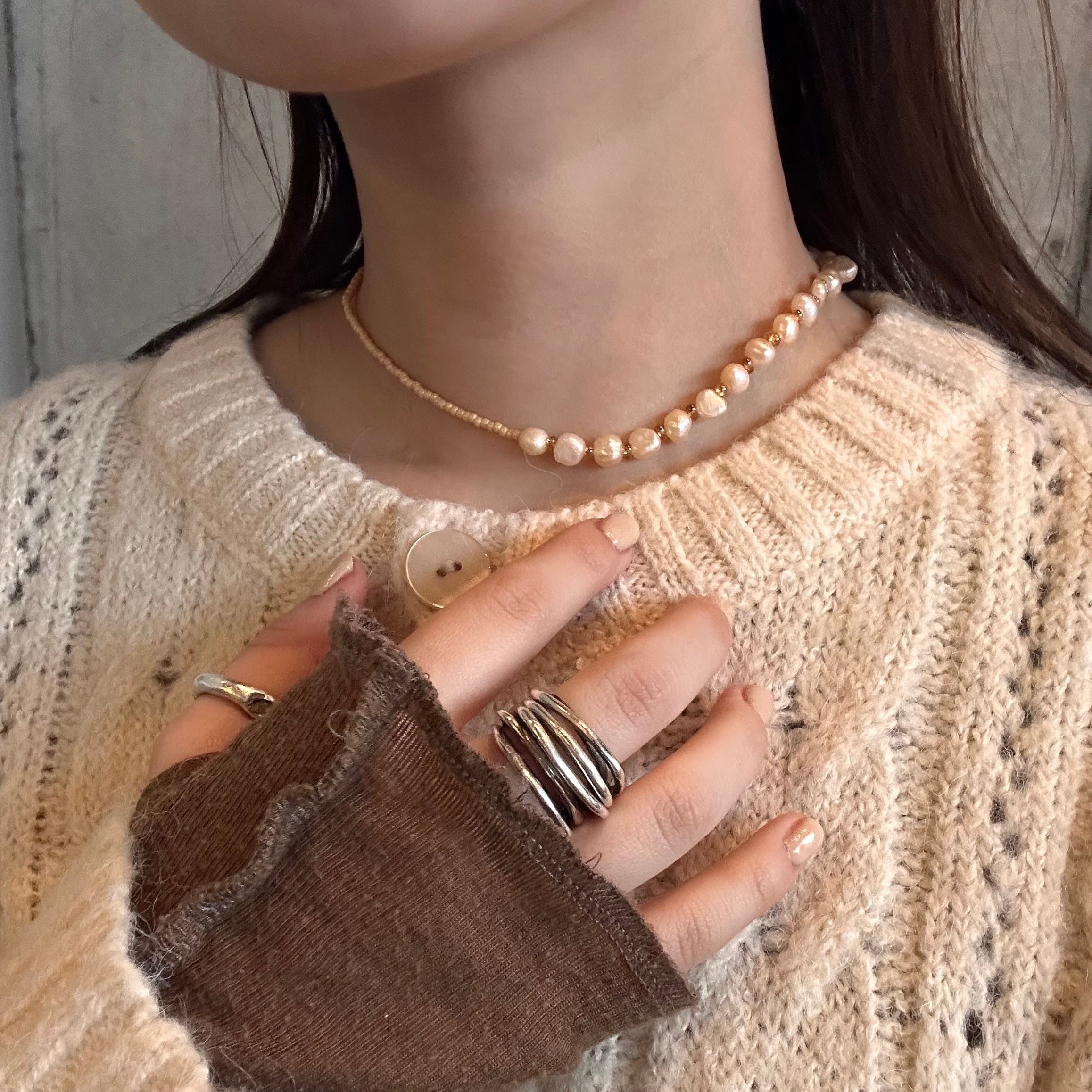 しっとりとした光沢が美しい、淡水パールを連ねたネックレス。