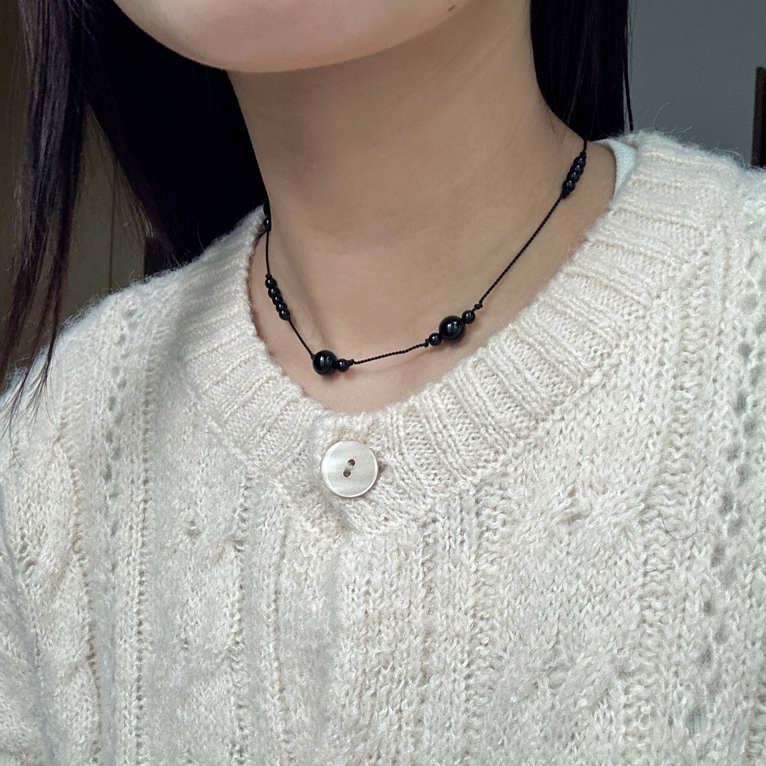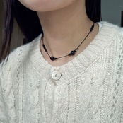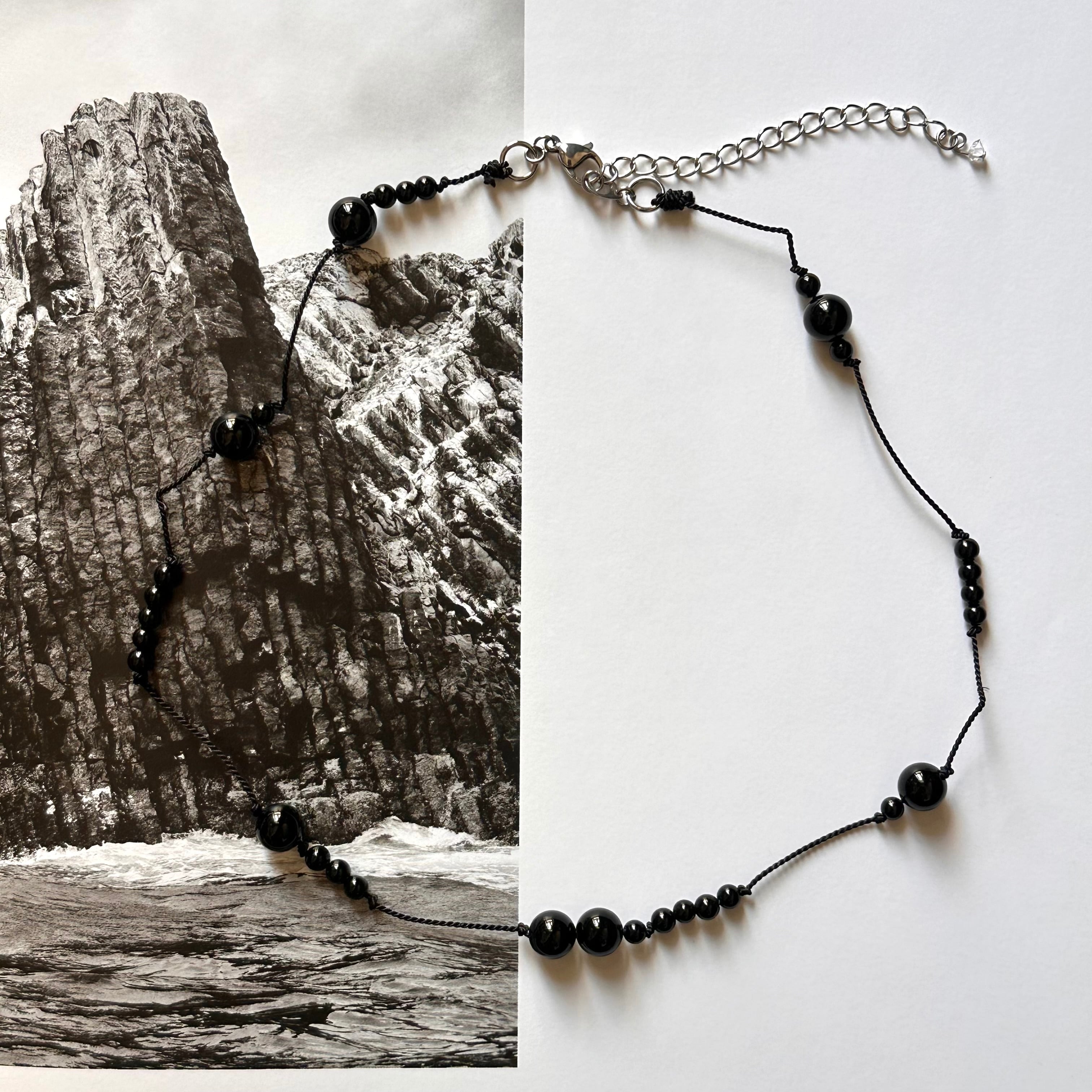 深いブラックの天然石・オニキスを使用した、シンプルながら凛とした印象のネックレス。